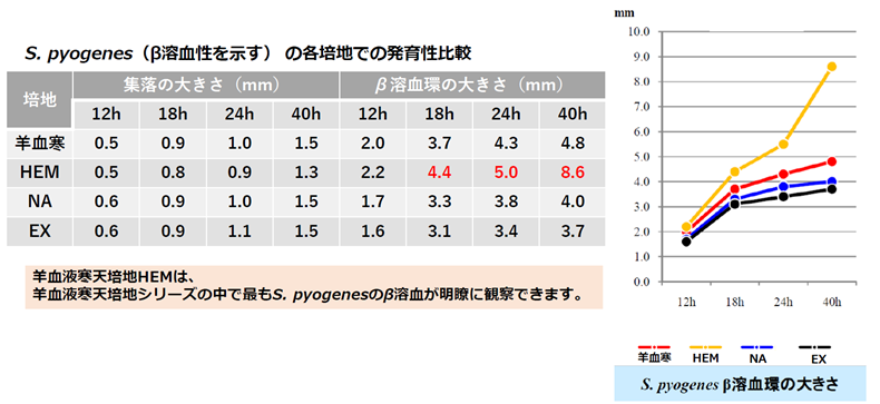 詳細は、β溶血性を示すS. pyogenesの各培地での発育性比較をご参照ください。