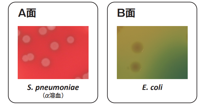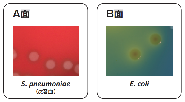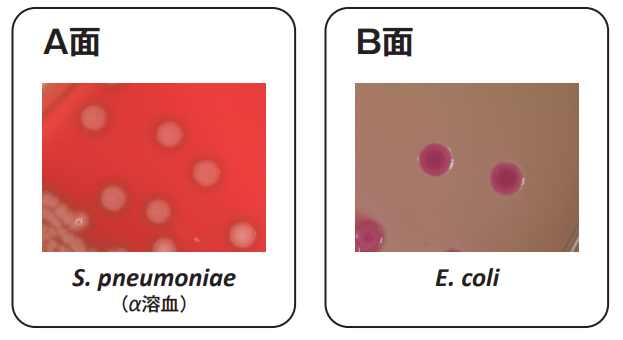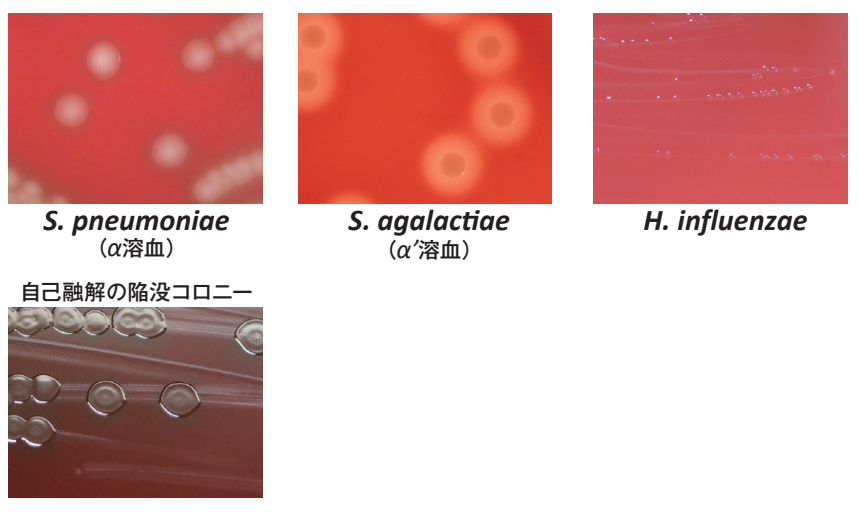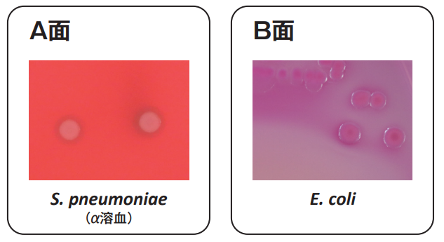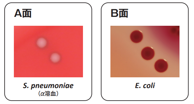 特に、肺炎球菌(Streptococcus pneumoniae)に対する発育支持力が優れており、集落は大きく溶血性も明瞭に出現します
