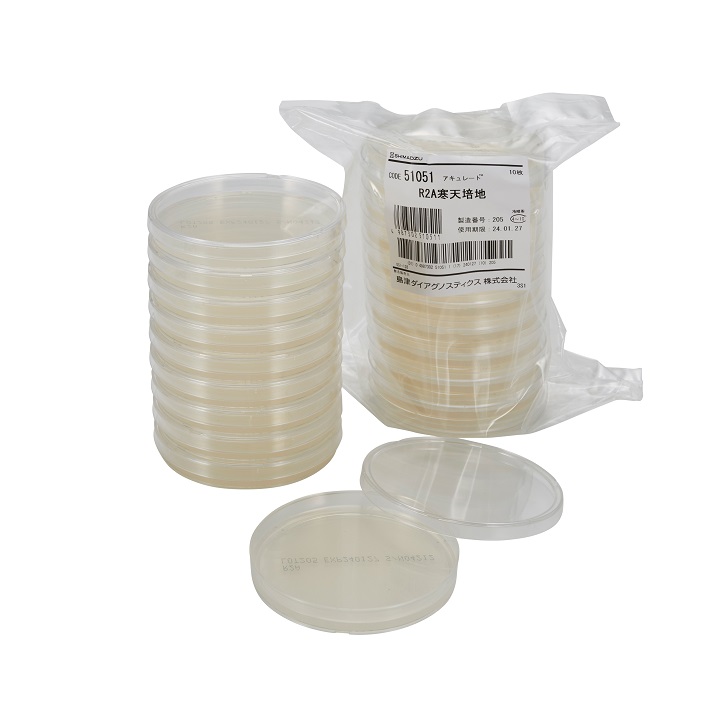 本培地は、有機栄養物を従来の培地の1/10程度にした培地であり、従属栄養細菌の生菌数測定に使用する。従属栄養細菌とは、有機栄養物の少ない水環境に生息している細菌類のことで、これらは従来の培地のような濃度の有機栄養物が含まれる培地には発育しないものが多い。